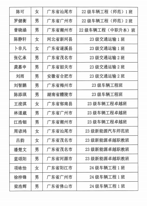 车辆工程(广东省省级一流专业)