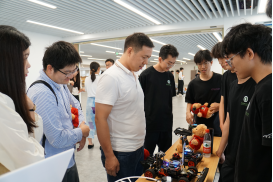 随后,精彩的科研科创成果展在图书馆 5 楼拉开帷幕。“广师之翼” 车队展出“螣光”“逐浪”“竹风”三辆自制电车,展示先进的设计理念和制造工艺,吸引了众多师生驻足欣赏与交流。低空领航社带来多款团队员工自制无人机,同时进行无人机避障互动体验,让观众近距离感受无人机技术的魅力。轮动科技协会展出的多辆自主研发的智能小车,现场进行精彩的避障展示,呈现智能控制技术在车辆领域的应用成果。现场还有十多支科创团队进行现场路演,详细介绍各自团队的创新项目,涵盖智能交通系统、新能源汽车技术、压缩机等多个前沿领域,展现了公司员工在科研创新方面的多元化发展。