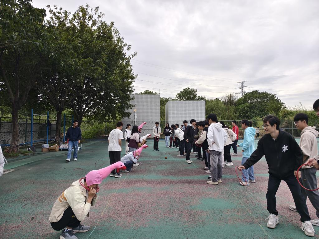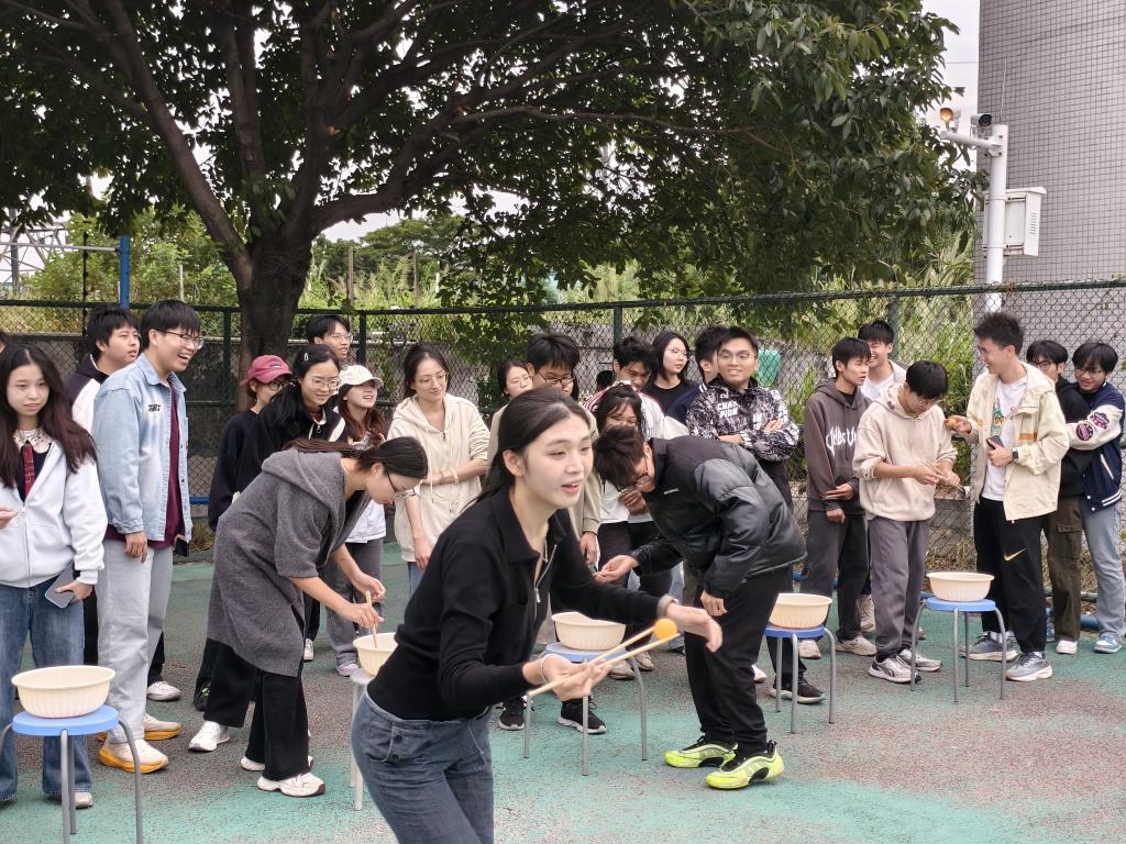 活动在秋日晴空下拉开帷幕,通过“区域争夺战”“筷子传球”“绘画传词”和“套大鹅”四个趣味游戏,逐步点燃了现场气氛。在“区域争夺战”中,同学们积极互动,在竞争中拉近了彼此的距离;“筷子传球”考验的是耐心与协作,一次次精准传递体现了团队的默契;“绘画传词”环节创意迸发,画作传递中笑声不断;“套大鹅”则是将活动推向高潮,部分同学戴上可爱的大鹅头套,另一部分则手持圈圈奋力投掷,现场气氛热烈,欢呼声此起彼伏,成为本次活动中最引人欢笑的环节。