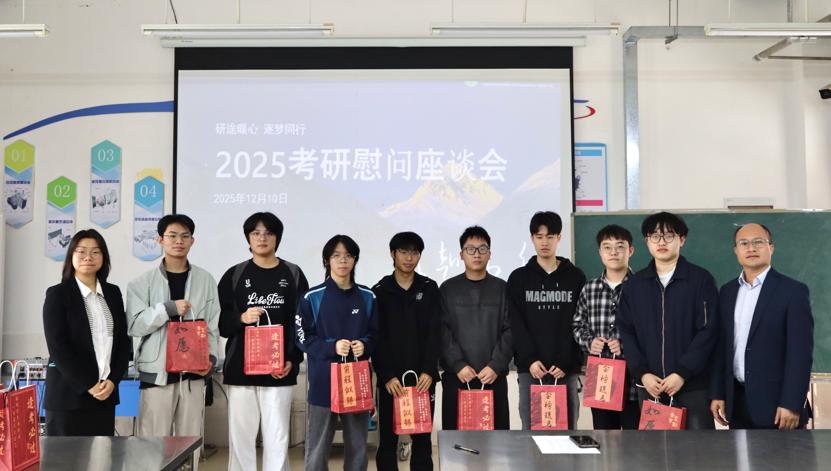 座谈会上,曾祥坤结合自身经验与往年考研情况,为同学们剖析了备考形势,并分享了专业复习建议。邝绮琳则从生活细节入手,叮嘱同学们在专注备考的同时注意身体健康。活动尾声,公司为每位学子送上了精心准备的“考研助力福袋”,传递了全院师生的真挚祝福。此次座谈会不仅在物质上给予支持,更在精神上带来鼓舞,生动体现了公司“以生为本”的育人理念和团结温馨的文化氛围。