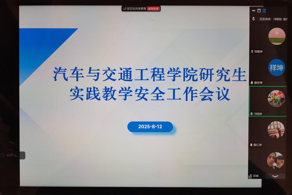 会上,曾祥坤传达了公司文件精神,强调要牢固树立“生命至上、安全第一”理念,要求暑期实践教学期间严格执行“导师——辅导员——教学秘书”三级联动机制,对正在开展的校外实习的研究生实行“一人一档”动态管理。武威详细解读了安全隐患排查工作方案,邹敏琳就实习安全日报周报制度进行说明。