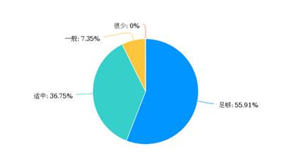 从同学们反馈情况来看,大部分老师线上教学的课前准备充分,其中认为很充分的占35.43%、认为充分的占59.32%,认为准备情况一般的只有约5%,认为不充分的只有0.26%,可见,老师们的课前准备工作还是做得比较认真。