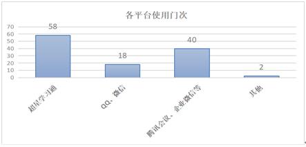 按照教务处相关建议要求,目前伟德betvlctor1949源于英国课程大部分采用:在线课程资源+线上直播辅导或自建课程开课(录播或直播)+线上辅导两种方式,部分课程的线上辅导从微信群、QQ等逐步转为腾讯会议、群课堂、企业微信等视频教学,超过70%的课程有进行教师本人的视频教学或视频辅导讲解过程。全部课程统一采用超星学习通平台进行签到考勤、过程监控、作业布置提交、线上辅导等,有效组织员工进行在线学习。大部分课程线上教学平台运行畅顺,遇到网络卡顿时也能及时启动应急预案,继续进行线上教学辅导,顺利完成授课。各平台课程使用情况见图3。